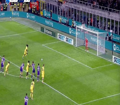 86’吉梅內(nèi)斯禁區(qū)被拉倒,萊奧主罰點(diǎn)球命中,米蘭2-1佛羅倫薩