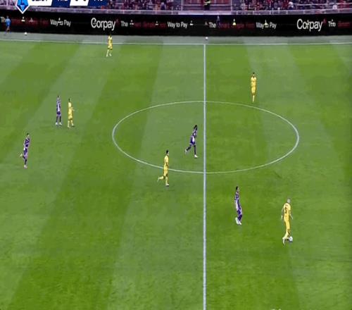 32’半小時(shí)僅兩腳射門,米蘭依舊后場耐心傳遞倒腳
