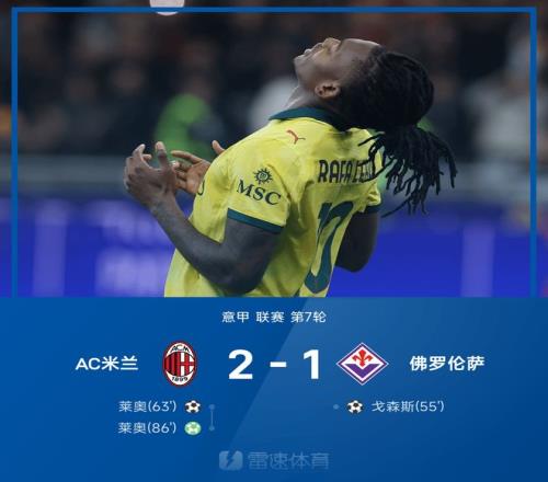 雷速體育10月20報(bào)道 25/26賽季意甲聯(lián)賽第7輪,AC米蘭2-1戰(zhàn)勝佛羅倫薩。上半場比賽兩隊(duì)互交白卷,下半場比賽戈森斯混戰(zhàn)破門幫助佛羅倫薩首開紀(jì)錄。隨后萊奧遠(yuǎn)射破門扳平比分,比賽最后時(shí)刻萊奧點(diǎn)射破門梅開二度,幫助米蘭成功完成逆轉(zhuǎn)。