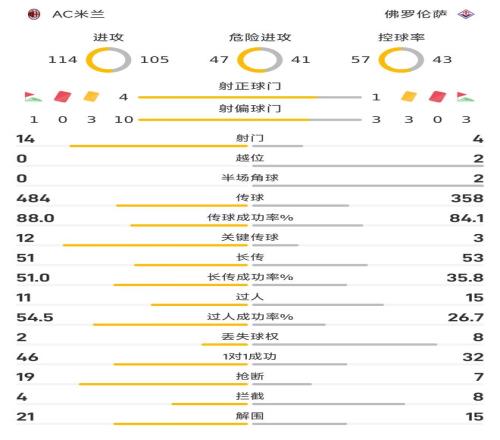 55’戈森斯混戰(zhàn)破門,AC米蘭0-1佛羅倫薩