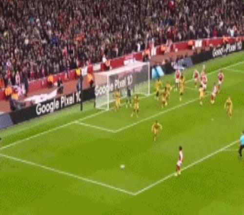 第58分鐘,特羅薩德小角度單刀外腳背似傳似射,薩卡未能碰到皮球。