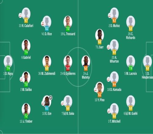 水晶宮首發(fā):1-亨德森、2-穆尼奧斯(92'24-索薩)、26-理查茲、5-拉克魯瓦、6-格伊、3-米切爾(92'12-烏切)、20-沃頓(92'8-萊爾馬)、18-鐮田大地(74'19-休斯)、7-薩爾、10-皮諾(59'9-恩凱蒂亞)、14-馬特塔