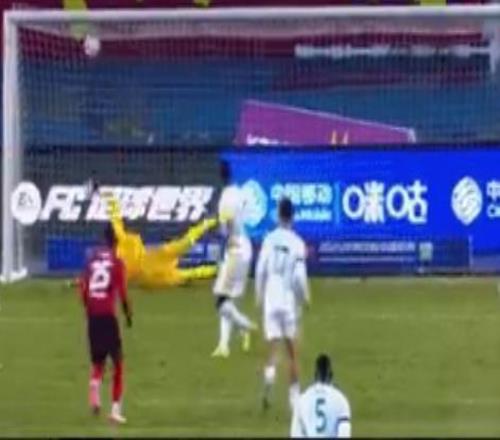 △北京國(guó)安外援法比奧第二次主罰點(diǎn)球瞬間(視頻截圖)