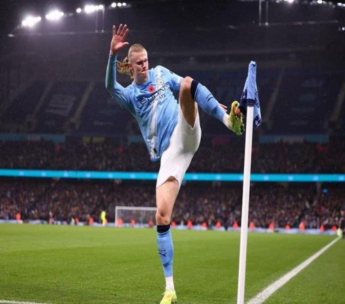 第28分鐘,努內(nèi)斯右路橫傳,哈蘭德頭球吊射破門,1比0!